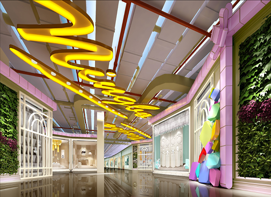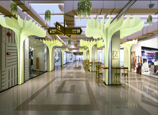 在空間設(shè)計(jì)上、不論是各通道出入口、或是十字交匯、又或地下一二層間的連接點(diǎn),處處都是注重增強(qiáng)街區(qū)的趣味性、感知性及動(dòng)態(tài)效果,以達(dá)改變傳統(tǒng)地下商業(yè)街的“壓抑、擁擠、無趣”印象。同時(shí)我們還通過改造排煙系統(tǒng)、空調(diào)系統(tǒng)、新風(fēng)系統(tǒng),增設(shè)植生墻、背景音樂、中庭空間等方式改善地下空間環(huán)境,給地下空間“自由呼吸”的舒適感覺。大量運(yùn)用LED燈光,達(dá)到節(jié)能環(huán)保與空間明亮的同步效果。營造百變空間讓消費(fèi)更加時(shí)尚。